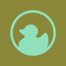 Een onverzadigde, lichte limoen-groene eend op een flink verzadigde, lichte blauwe achtergrond